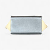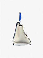 Sac Céline Trapeze en cuir tricolore bleu, marine et beige, au design structuré et chic. Fermoir doré, poignée rigide et allure moderne et élégante.