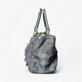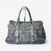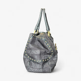 Sac Just Cavalli en toile grise avec logo signature, détails dorés et finitions simili cuir. Chic, spacieux et parfait pour toutes les occasions.