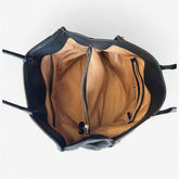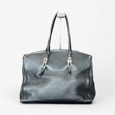 Sac noir en cuir grainé Fossil, au design chic et structuré. Détails métalliques argentés et double anse pour un porté main ou épaule.