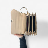 Sac Valentino Garavani en cuir beige, orné d’un nœud raffiné à l’avant. Design structuré, multiples compartiments et finitions luxueuses pour une allure chic et féminine.